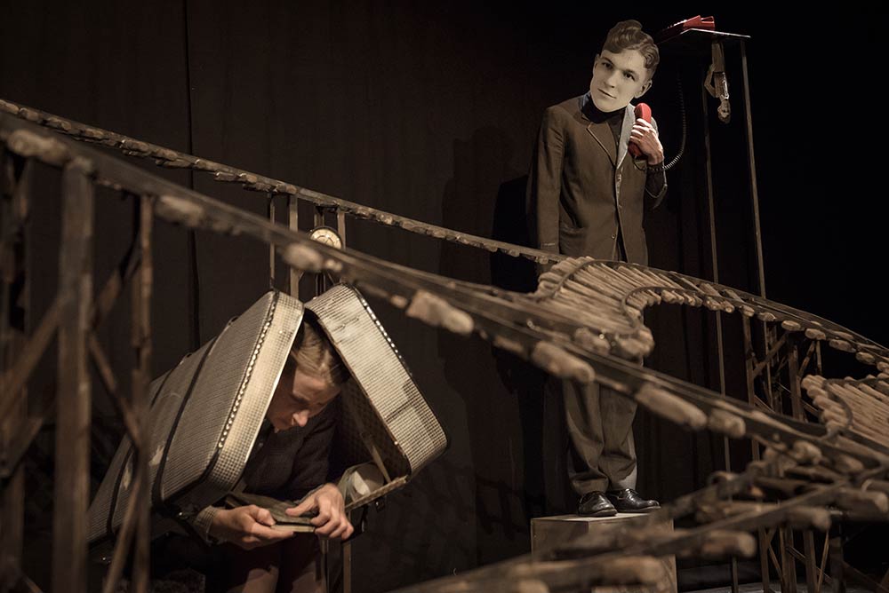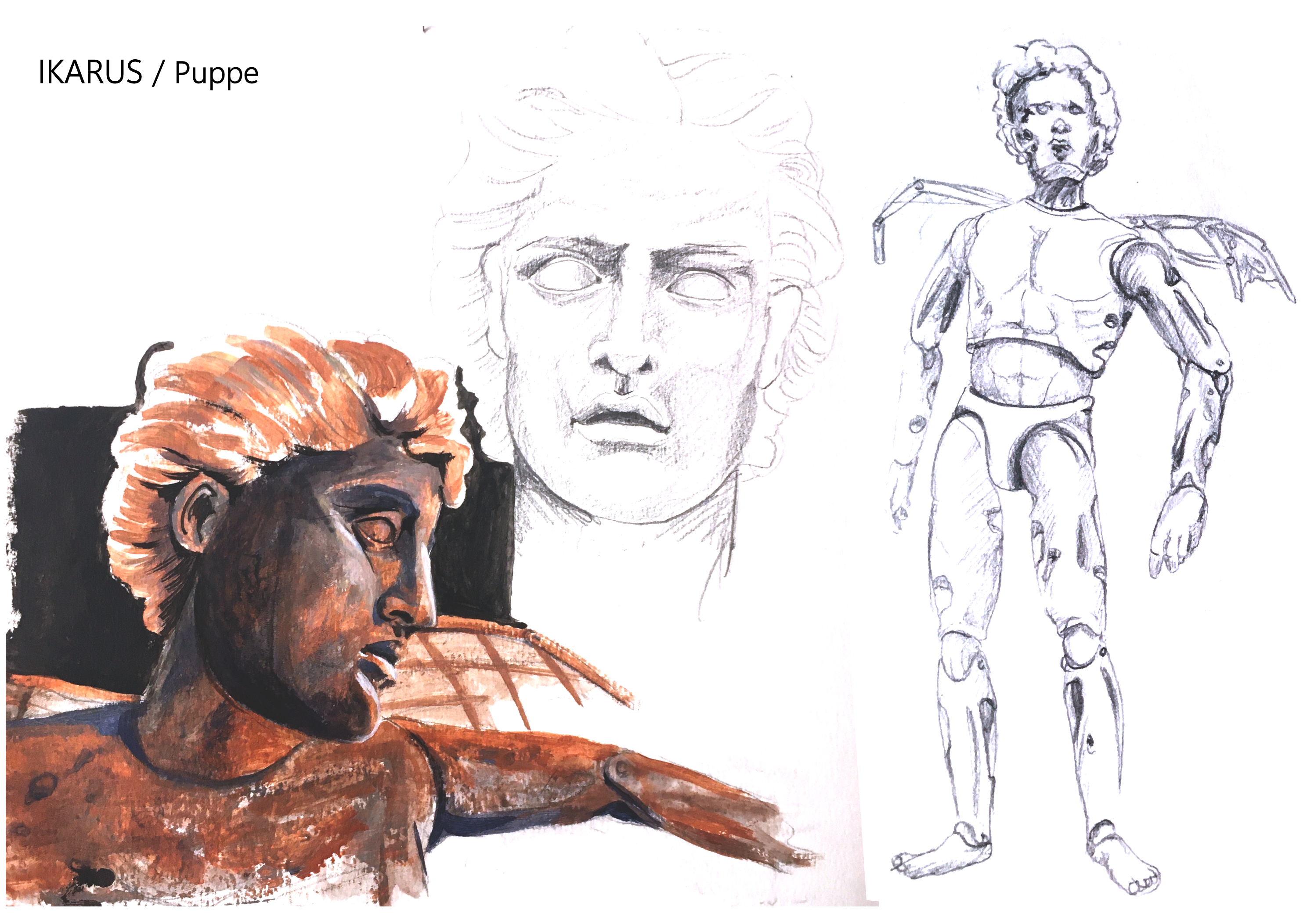 Stage/Costume and puppet Design for "Ikarus". Director : Nis Søgaard. Studioinszenierung 3. Studienjahr, HfS Ernst Busch, Zeitgenössische Puppenspielkunst, Berlin.